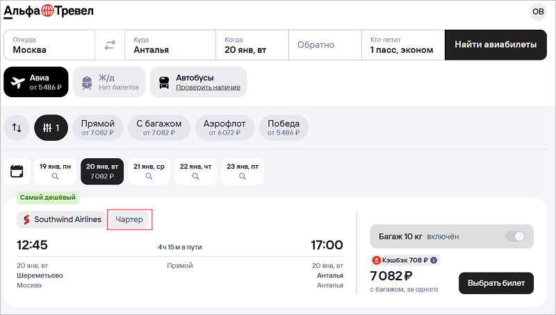 В отличие от обычных рейсов у чартерных нет регулярного расписания — их организуют под конкретный тур или перелёт. Расскажем, какие ещё особенности есть у чартеров и как купить на них билеты через Альфа-Тревел.